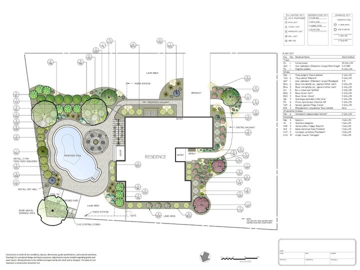 2D Landscape design plans 2D Designs offers a overhead view of with plants and materials list. drawn to scale